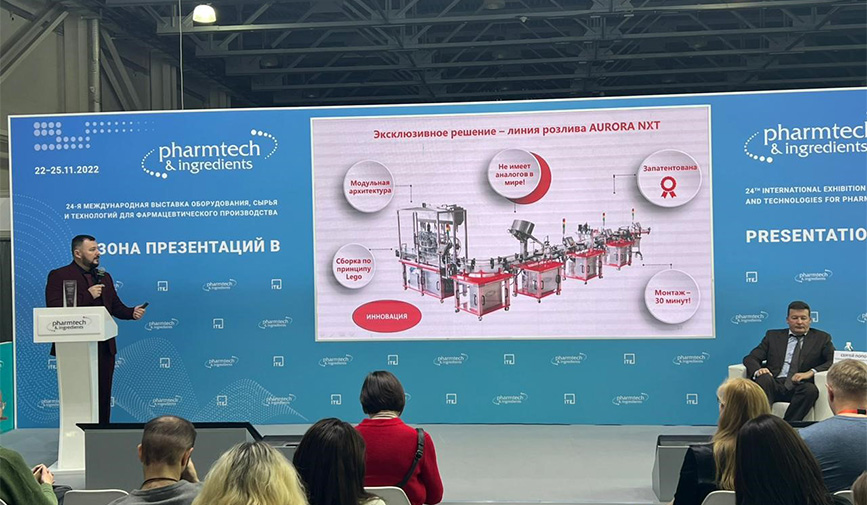 Завод АВРОРА представляет на выставке перистальтический дозатор нового поколения, созданный специалистами предприятия на базе собственных эксклюзивных разработок. Применение оборудования позволяет достигать повышенной точности розлива продуктов в дозировке от 2 мкл. Машина востребована в фармацевтической, ветеринарной, косметической, химической промышленности.
